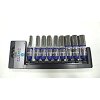 Le kit comprend 9 douilles 6 pans: 8, 10, 11, 12, 13, 14, 17, 19 et 21 mm et un support de rangement pour un rangement facile.