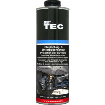 Protection châssis et projections de gravillons SprayTec est un matériau de revêtement de sol à base de résine synthétique et de caoutchouc qui peut être peint. Spécialement développé pour une utilisation sans goutte pour un traitement immédiat en spray ou en flacon entonnoir prêt à l’emploi avec le pistolet à aspiration d’air ou airless. Forme une couche protectrice élastique permanente contre les éclats de pierre de toutes sortes. La protection châssis bitume SprayTec a la plus haute résistance à la corrosion (selon DIN 53210SS, essai au brouillard salin 200 heures), une excellente adhérence et une résistance à l’abrasion plus élevée. Le produit est viscoplastique, sèche rapidement et peut être peint avec n’importe quel système de peinture une fois qu’il a séché. Protection efficace contre la chaleur et le froid et peut être utilisé de 5 ° C à 35 ° C. Résistant au toucher après env. 2 heures, complètement sec après 24 heures. Protection châssis et projections de gravillons SprayTec est utilisé à l’extérieur des carrosseries de voiture, par exemple sur les spoilers, tabliers arrière, seuils, etc. Le véhicule est protégé en permanence contre les influences mécaniques et chimiques.