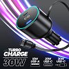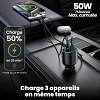 Chargeur allume-cigares avec câble rétractable Doté des dernières technologies de charge turbo - Vitesse de charge ultra-rapide pour tous vos appareils mobiles - Compact et pratique - Doté de 2 sorties et d'un câble USB-C : 1 Port USB-A QC3.0 (puissance 18W) + 1 Port USB-C PD (puissance 20W) + Câble USB-C (puissance 30W) - Puissance totale maximum du chargeur : 50W - Entrée(s) : 12-24V - Dimensions : l 4,9 x L 10 x P 3.6 cm - Coul. noir